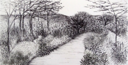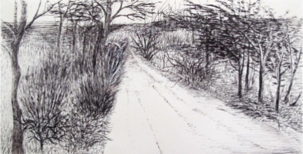 Serie: Landeinwärts - von Tag zu Tag, 15 x 30 cm, Fineliner und Tinte auf Papier